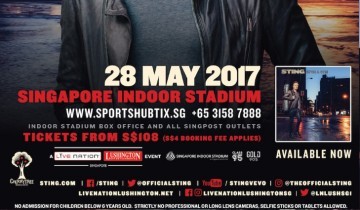 Live Nation Lushington is proud to announce the return of English singer-songwriter Sting, performing live in Singapore on Sunday, 28 May 2017 at the Singapore Indoor Stadium at the Sports Hub. Ticket from S$98 will be available via all Sports Hub Tix channels on Thursday 15 December at 10am onwards. Members of the official Sting fan club will have the opportunity to purchase tickets in advance, from Friday, 9 December at 10am to Saturday, 10 December at 11:59pm...