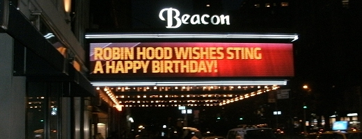 Fan Club members were in attendance at Sting's all star SIXTIETH BIRTHDAY CELEBRATION CONCERT at New York's Beacon Theatre in October 2011 which raised more than $7m for the Robin Hood charity.