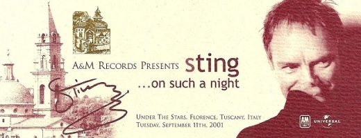 In September 2001, Fan Club members were INVITED TO STING'S HOME near Florence to attend the recording/filming of the '...All This Time' CD and DVD.