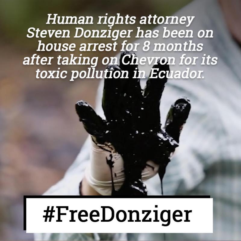 In 2011, human rights attorney Steven Donziger helped Ecuadorian Indigenous peoples and local communities win a landmark $9.5 billion judgment against Chevron for toxic pollution in the Amazon rainforest. However, due to relentless legal attacks by Chevron and for refusing to turn over his confidential case files for the oil company to review, Donzinger has now been on house arrest for an unprecedented 8 months. These erroneous charges against him must be dismissed. 29 Nobel laureates signed onto a statement calling for Donziger to be freed. I stand with them, together with The Rainforest Fund, which worked tirelessly to claim justice for the Ecuadorian communities who lost many loved ones due to oil pollution and lack of proper cleaning as result of Chevron’s illegal practices. #FreeDonziger. makechevroncleanup.com