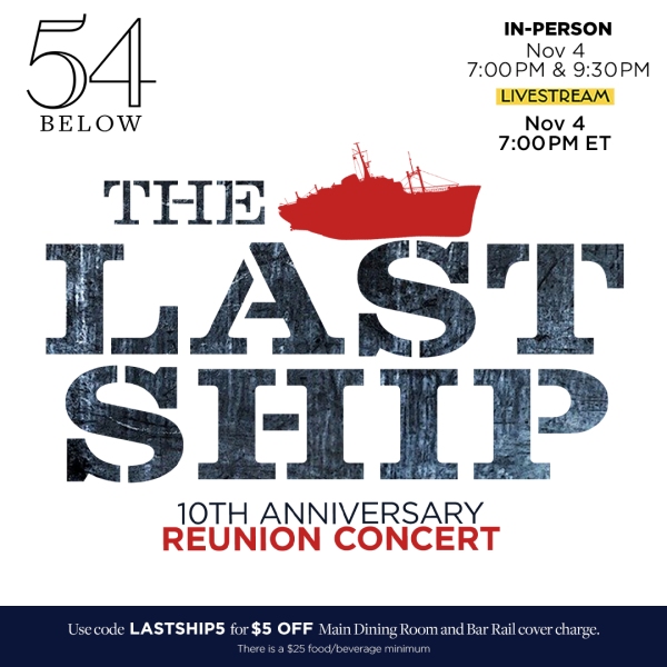 The previously announced Last Ship Reunion Concert being held at 54 Below in New York on November 4 will now be available to watch via a ticketed livestream. A portion of proceeds from ticket sales will go to benefit Project ALS in honour of cast member Aaron Lazar. The event has along since sold out but tickets for the livestream can be purchased here...