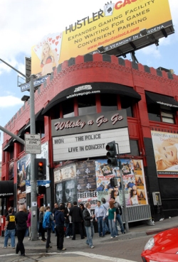 When we were able to get in line in front of the Whiskey, I saw everything coming together such as the media interviewing fans, some famous people arriving, and everyone's ID checked thoroughly. The best part of waiting in line was listening to The Police sound check through the building. Some in line were just trying to guess which song they were playing, and others were putting their ear on the building to get the entire experience of the vibrations. (Including me!)