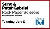 Whether a meeting of the musical masterminds or just a playful boys’ night out, the Rock Paper Scissors tour that brought British rock icons Sting and Peter Gabriel to the same stage made for a hell of an opening night for this year’s Festival d’été de Québec.