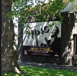 A fan of musician Sting has nabbed a pretty impressive (albeit premature) souvenier of the superstar's forthcoming Christchurch concert with the New Zealand Symphony Orchestra on February 10 at CBS Canterbury Arena by snipping the tie-ropes of a 4 metre by 3 metre canvas billboard advertisement for the concert in the middle of the night, which was attached to the outside wall of the Christchurch Town Hall until last week, and making off undetected with their prized contraband.