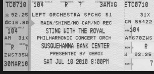 Sting, majestic alongside Royal Philharmonic... His voice is one of the most magnificent wonders to experience live in concert, which is why it is no surprise that Sting demands the purest of sound in his music. In defying cultural and political barriers in his lyricism, Sting has defined a generation of songwriting throughout his solo career in addition to his accomplishments with his former band, The Police. This summer, Sting has refined his greatest compositions and teamed up with the Royal Philharmonic Concert Orchestra, most recently taking the 'Symphonicity' tour through the Philadelphia area this past Saturday night at Camden's Susquehanna Bank Center. Surrounded by the 45-piece London-based orchestra conducted by Maestro Steven Mercurio along with his band, Sting stood at the helm of musical masterpiece as he brought his best known solo material and mixed in several songs from his days with The Police to the two-and-a-half-hour set. Before opening with his hit song 'If I Ever Lose My Faith in You' off of his Grammy-nominated album, 'Ten Summoner's Tales', Sting, dressed formally in all black, greeted the audience then introduced the orchestra and his fantastic five-piece band along with critically acclaimed conductor Mercurio. In a theater setting, the stage was transformed into an incredible acoustic soundscape with dramatic stage lighting. His voice has retained its form throughout his entire career, which was noticeable in the transition to the opening song of the evening. With his arm resting casually on his microphone stand, Sting followed with 'Englishman in New York' off of his 1987 album 'Nothing Like the Sun'. The 'Symphonicity' project has brought new life and meaning to some of the songs in Sting's catalogue. "One thing about his project was to discover some new things that were never heard in the music," Sting said of the arrangements. Musically and logistically it has been an amazing endeavor, but fronting an orchestra seemed to be the ultimate setting for Sting as he has had so much more to work with on the musical palette. I was interested to see how much of a presence the orchestra would have on the rock-based songs from his days with The Police. With fans on their feet, Sting transitioned into 'Every Little Thing She Does is Magic' and followed with 'Roxanne', two of the most well known songs from the industrial sounds of The Police. As the mood shifted to a Cold War-era vibe, a blanket of red lighting covered the stage as Sting transitioned into his politically driven song 'Russians', from his debut album 'The Dream of the Blue Turtles'. "We share the same biology, regardless of ideology," Sting sang powerfully into the cool night air; I have always especially liked that lyric in 'Russians'. Act one included one of my favorite Sting songs, 'Shape of My Heart', that he co-wrote with his long time guitarist Dominic Miller. The song features a reoccurring intricate guitar riff from Miller throughout the song but lyrically is so complex. The meaning appears to be about a card player that continues to defeat his opponents but also touches on the African diamond trade in the chorus. "I know that diamonds mean money for this art, but that's not the shape of my heart," sang Sting. Also featured in the first set was the song 'Whenever I Say Your Name' from Sting's 2003 release, 'Sacred Love'. Backup vocalist Jo Lawry got a chance to showcase her incredible voice on the duet as she was featured on the parts sung by Mary J. Blige on the original recording. With a short intermission in between the two main sets to the show, Sting returned with 'A Thousand Years', the opening song off of his 1999 album 'Brand New Day'. As Sting continued to speak a little about each song's history I found it interesting how he explained his process for writing and assembling songs. "In the past 10 years or so I have completely finished the arrangement and structure of the music before writing song lyrics," Sting said. He also mentioned how it allowed for the music lead the direction of how the emotion of the song will pan out and what story will become of each song. "What emerged from this music disturbed me greatly," Sting said prior to singing 'Tomorrow We'll See', off of 'Brand New Day'. As the emotion transitioned into a darker and spookier feeling, Sting threw on a vampire's cape as he sang 'Moon Over Bourbon Street' with a resemblance of a full moon lingering overhead on the large screens. With fans rising to their feet midway through the song 'King of Pain', where the music builds up especially in the chorus, Sting jammed on his nylon stringed guitar as Dominic Miller soloed to a roaring crowd. The entire orchestra was really getting into the music as you could see the string sections swaying back and forth in synchronicity. Closing out the main part of his second set, Sting offered up 'Every Breath You Take', one of The Police's greatest songs. The lyrics to the song are so beautiful and this has remained one of my favorite songs of all-time. The extended version included Sting's signature calls to the audience in the ending and finished off with a great standing ovation. Swiftly bowing to the audience and sliding off stage, Sting quickly returned for an encore as he dove into 'Desert Rose', the compelling song with a middle-eastern aura to it that featured Algerian-born singer Cheb Mami on the album version. The bridge parts in 'Desert Rose' were so electrifying and much stronger with the full orchestra at the foundation. "I dream of rain/I dream of gardens in the desert sand/I wake in vain/I dream of love as time runs through my hand," sang Sting with fans on their feet. He continued the encore with the upbeat 'She's Too Good For Me' and followed with the delicate song 'Fragile' that has become an integral part to his shows. Sting's guitar playing was the most distinct on 'Fragile' as he played the opening riffs in front of a smooth string arrangement. As Sting brought the night t