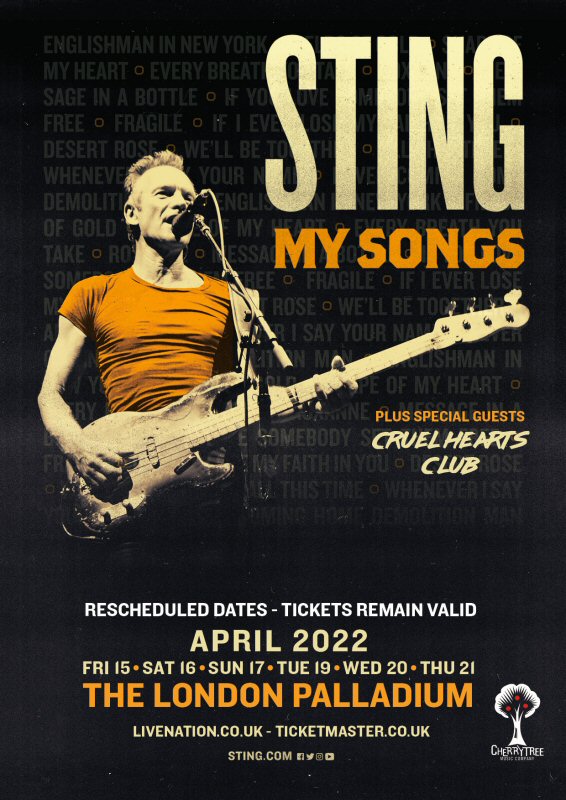 Therefore, Sting’s performances at the London Palladium will be rescheduled as follows: