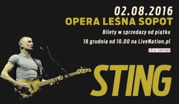 On Tuesday, August 2, 2016, Sting will perform at the Forest Opera in Sopot, Poland! Tickets will go on sale early to Sting.com fan club members beginning tomorrow, December 16 at 10AM (local), with the general public on-sale beginning Friday, December 18 at 10AM (local). See you on the road!