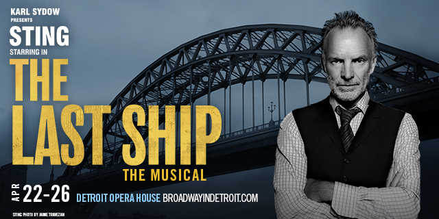Sting will star in the Broadway In Detroit production of The Last Ship. These performances will be staged at the Detroit Opera House from April 22 to April 26.