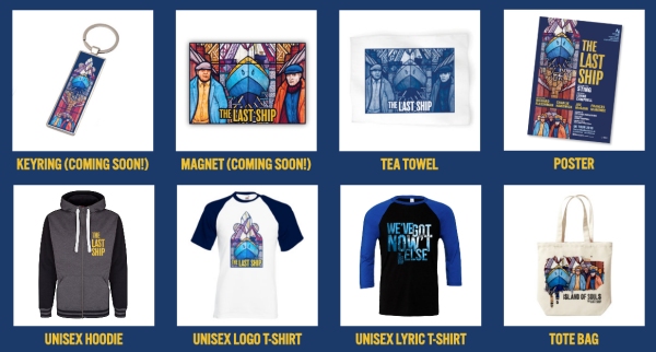 A range of merchandise for The Last Ship is available both in theatres and online at The Theatre Shop. There are a couple of t-shirts, a hoodie, tote bag, poster etc. with a few additional items to come.