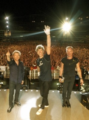 Sting: We do a group hug. Well maybe one each... three of us together hugging, I don't know about that. But I'll give Stewart a hug... or a kick depending on how we feel.