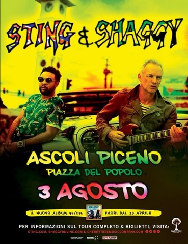 Sting and Shaggy announce three new concerts in Italy: the two iconic artists will perform on August, 3 at Piazza del Popolo in Ascoli Piceno, the following day at Piazza della Cattedrale in Trani and on August, 5 at Arena della Regina in Cattolica.